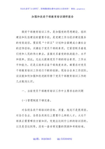 / 加强和改进干部教育培训调研报告