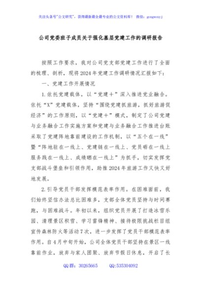 / 公司党委班子成员关于强化基层党建工作的调研报告