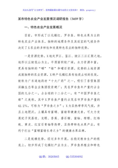 / 某市特色农业产业发展情况调研报告