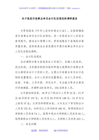 / 关于我县行政事业单位会计队伍现状的调研报告
