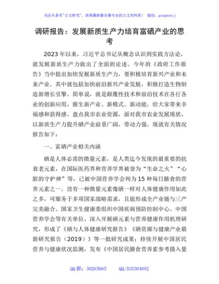 / 调研报告:发展新质生产力培育富硒产业的思考