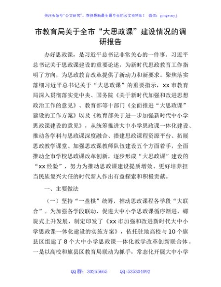 / 市教育局关于全市“大思政课”建设情况的调研报告