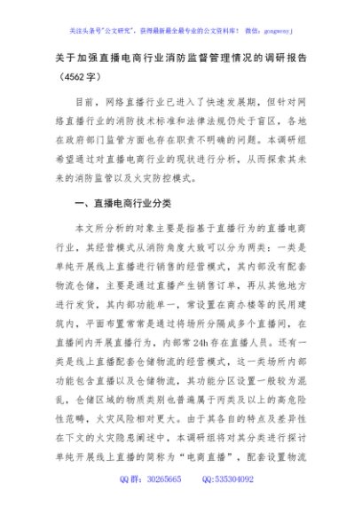/ 关于加强直播电商行业消防监督管理情况的调研报告(4562字)