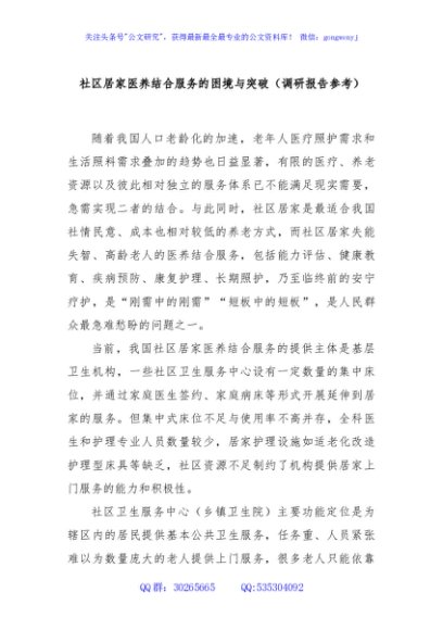 / 社区居家医养结合服务的困境与突破(调研报告参考)