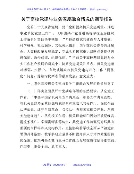 / 高校党建与业务深度融合情况的调研报告(学校)