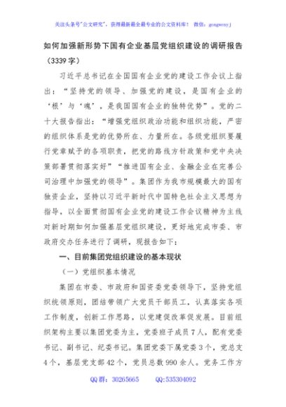 / 如何加强新形势下国有企业基层党组织建设的调研报告(3339字)