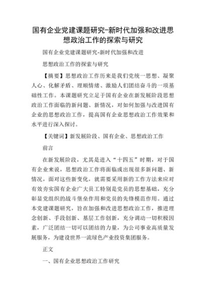 / 国企公司党建课题研究-新时代加强和改进思想政治工作的探索与研究(调研报告)