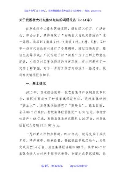 / 关于发展壮大村级集体经济的调研报告(5144字)