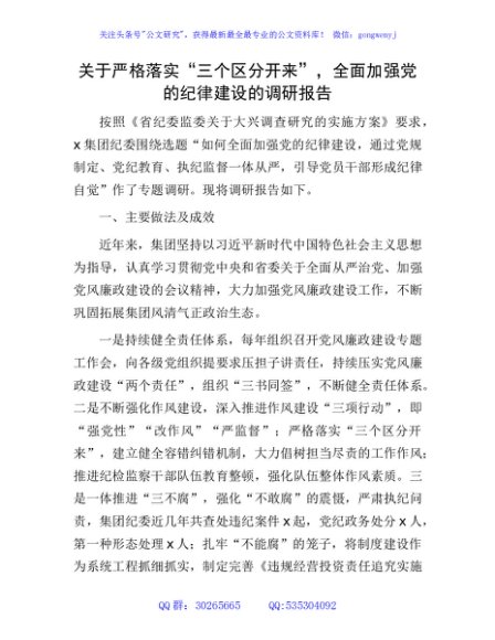 / 关于严格落实“三个区分开来”,全面加强党的纪律建设的调研报告