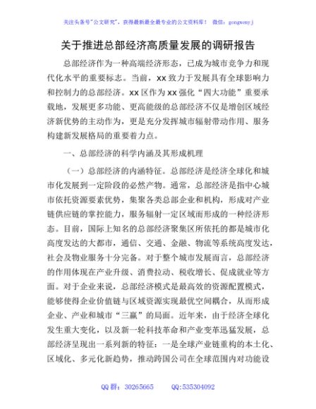 / 推进总部经济高质量发展的调研报告