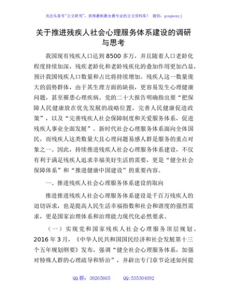 / 推进残疾人社会心理服务体系建设的调研与思考(调研报告)