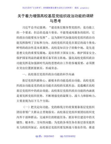 / 着力增强高校基层党组织政治功能的调研与思考(调研报告)