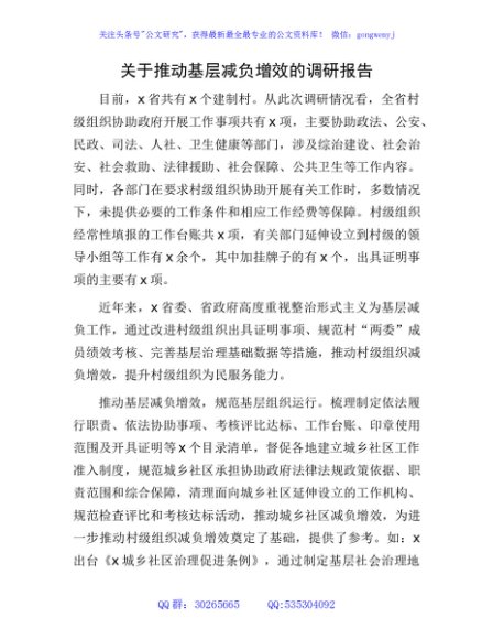 / 推动基层减负增效的调研报告
