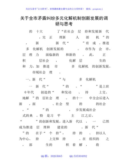 全市矛盾纠纷多元化解机制创新发展的调研与思考(调研报告)