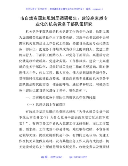 市自然资源和规划局调研报告:建设高素质专业化的机关党务干部队伍研究