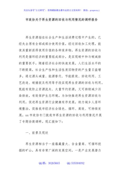 市政协关于再生资源的回收与利用情况的调研报告