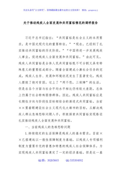 / 关于推动残疾人全面发展和共同富裕情况的调研报告