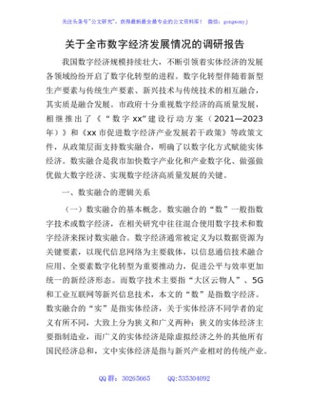 / 全市数字经济发展情况的调研报告
