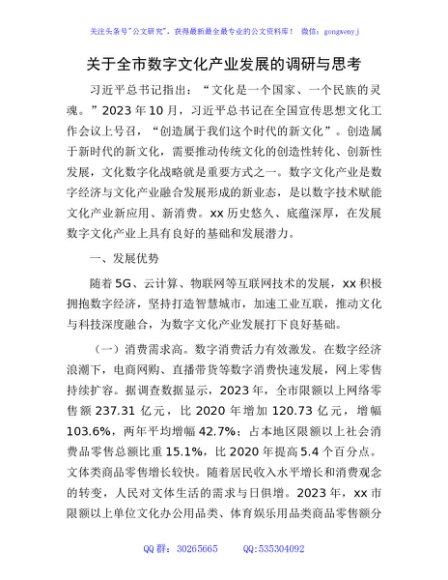 / 全市数字文化产业发展的调研与思考(调研报告)