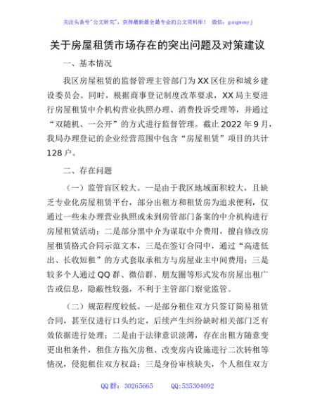 / 调研报告:房屋租赁市场存在的突出问题及对策建议