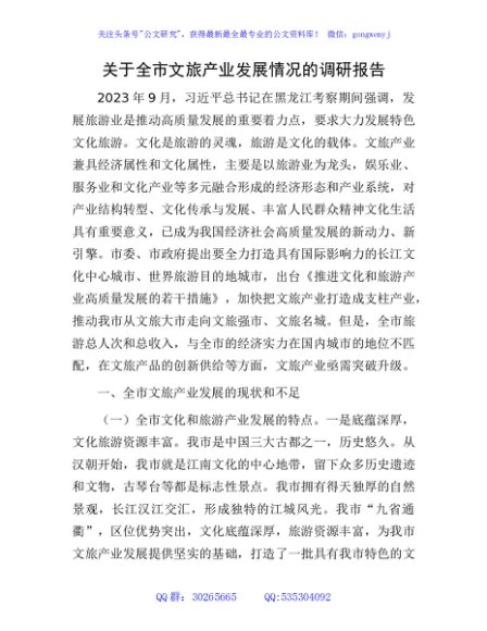 关于全市文旅产业发展情况的调研报告(5503字)