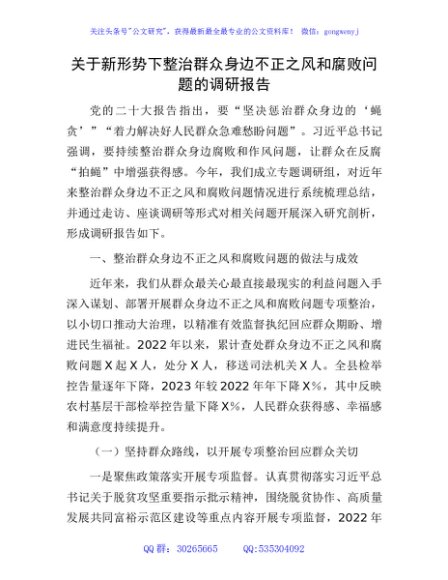 新形势下整治群众身边不正之风和腐败问题的调研报告