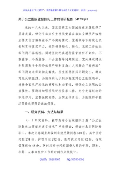 / 关于公立医院监督执纪工作的调研报告(4173字)