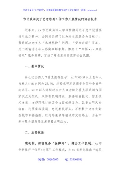 / 市民政局关于助老志愿工作工作开展情况的调研报告