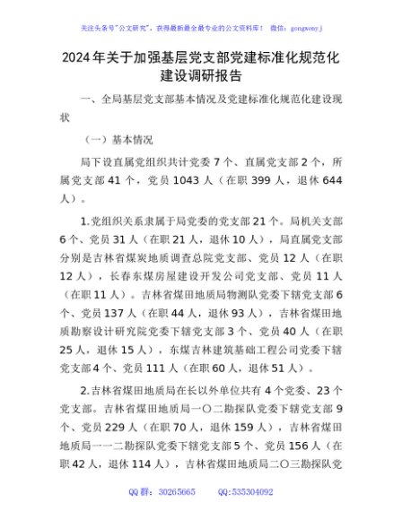 / 加强基层党支部党建标准化规范化建设调研报告