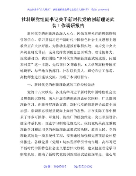 / 社科联党组副书记关于新时代党的创新理论武装工作调研报告