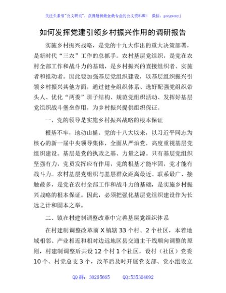 / 如何发挥党建引领乡村振兴作用的调研报告