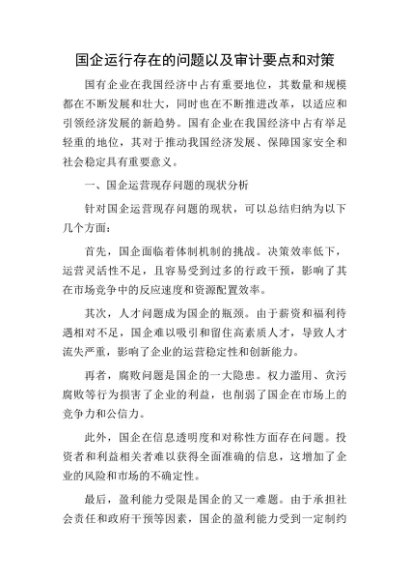 / 国企运行存在的问题以及审计要点和对策(调研报告)