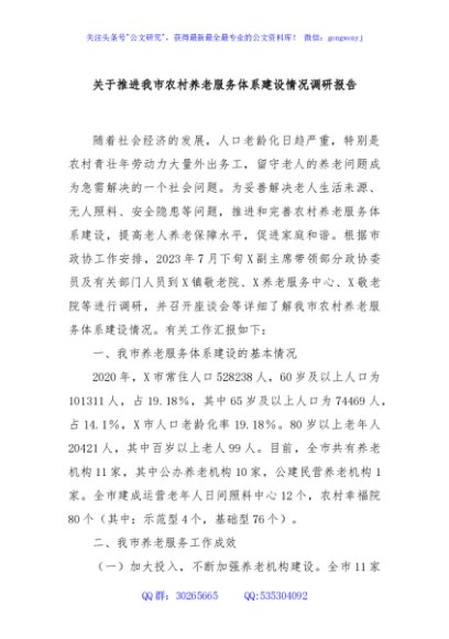/ 关于推进我市农村养老服务体系建设情况调研报告