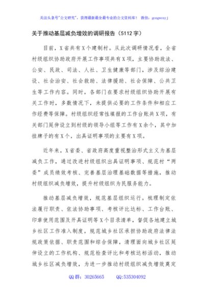 / 关于推动基层减负增效的调研报告(5112字)