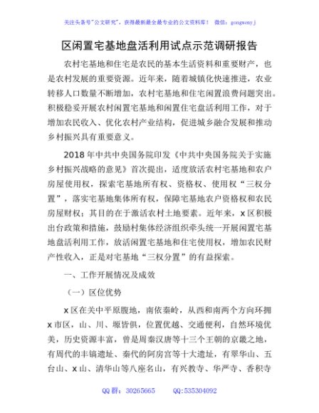 / 区闲置宅基地盘活利用试点示范调研报告