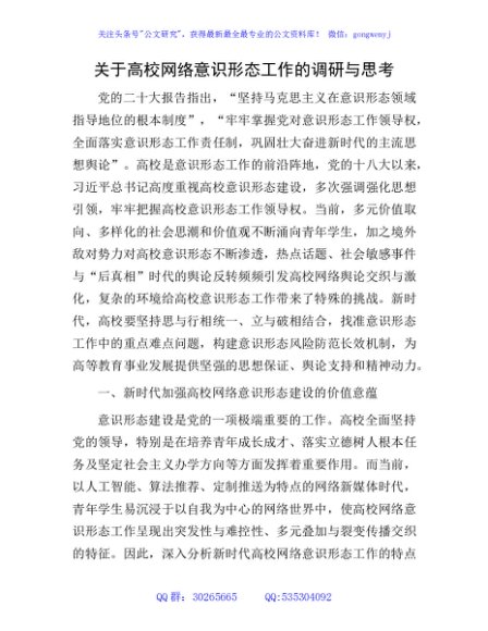 / 高校网络意识形态工作的调研与思考(学校调研报告)