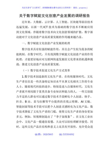 / 数字赋能文化创意产业发展的调研报告