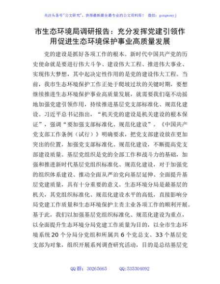 / 市生态环境局调研报告:充分发挥党建引领作用 促进生态环境保护事业高质量发展