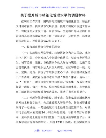 / 提升城市精细化管理水平的调研材料(调研报告)