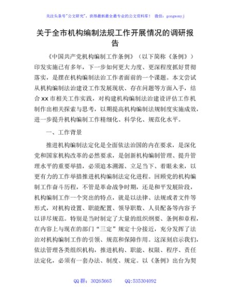 / 全市机构编制法规工作开展情况的调研报告