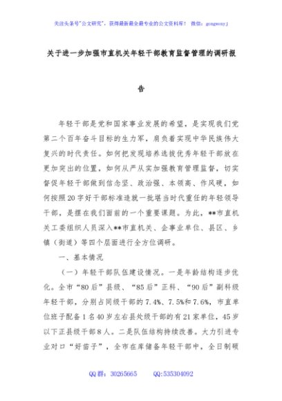 / 关于进一步加强市直机关年轻干部教育监督管理的调研报告