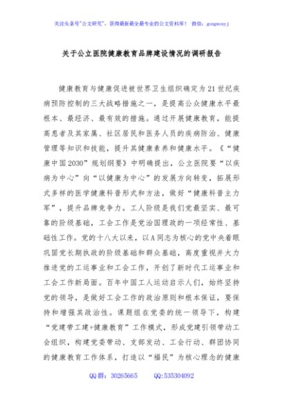 / 关于公立医院健康教育品牌建设情况的调研报告