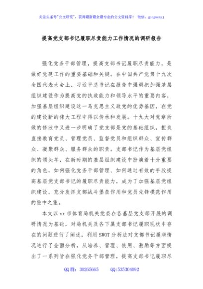 / 提高党支部书记履职尽责能力工作情况的调研报告