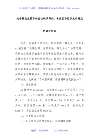关于推动党员干部密切联系群众,有效引导组织发动群众的调研报告
