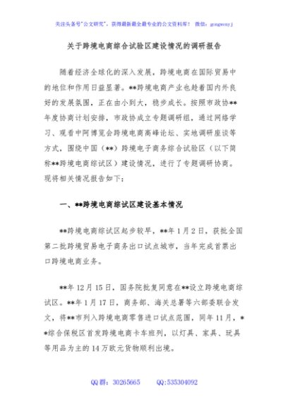 / 关于跨境电商综合试验区建设情况的调研报告