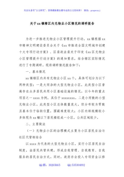 / 关于xx镇辖区内无物业小区情况的调研报告