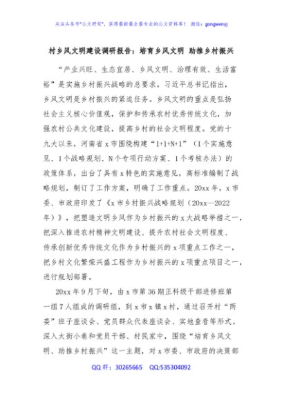 / 村乡风文明建设调研报告:培育乡风文明 助推乡村振兴