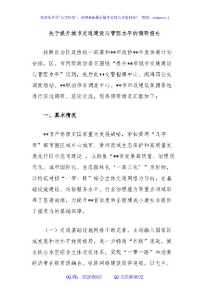 / 关于提升城市交通建设与管理水平的调研报告