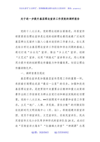 / 关于进一步提升基层理论宣讲工作质效的调研报告