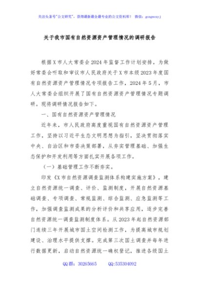 / 关于我市国有自然资源资产管理情况的调研报告